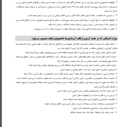 موارد انضباطی که در آزمون ارتکاب آن توسط دانشجویان تخلف محسوب می گردد