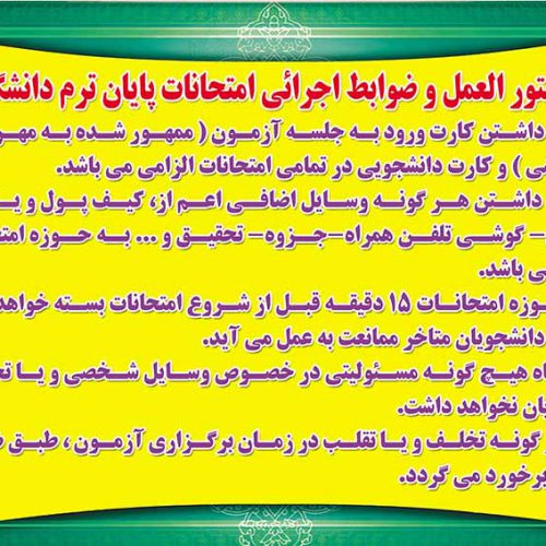 دستورالعمل ضوابط اجرایی امتحانات اجرایی پایان ترم دانشگاه: